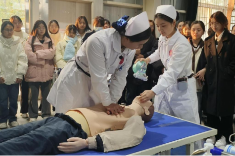 近年来,学校始终将急救教育工作作为立德树人根本任务的重要载体,以“普及急救知识、提升应急能力”为核心目标,积极倡导并培育“人人学急救 急救为人人”的校园安全文化氛围,多维度推进急救教育工作。在课程建设上,将AED使用、心肺复苏、创伤救护等核心技能纳入安全教育、急救教育课程体系,面向全校学生开设应急救护微专业、急救教育选修课;在培训实践中,与河南省、新乡市红十字会及附属医院定期举办急救知识讲座与技能培训(涵盖心肺复苏CPR、创伤包扎等核心内容)、常态化组织应急演练等形式,面向全体师生普及急救知识技能;在设施保障方面,依托校医院、护理学院和医学院,建设总面积约500㎡安全生产基地1个,内设交通安全体验区、消防安全体验区、防灾减灾体验区、禁毒体验区和特种设备安全体验区等功能,在校园关键区域配置自动体外除颤仪(AED)、急救箱等专业急救设备,为应急救护实训提供坚实基础。