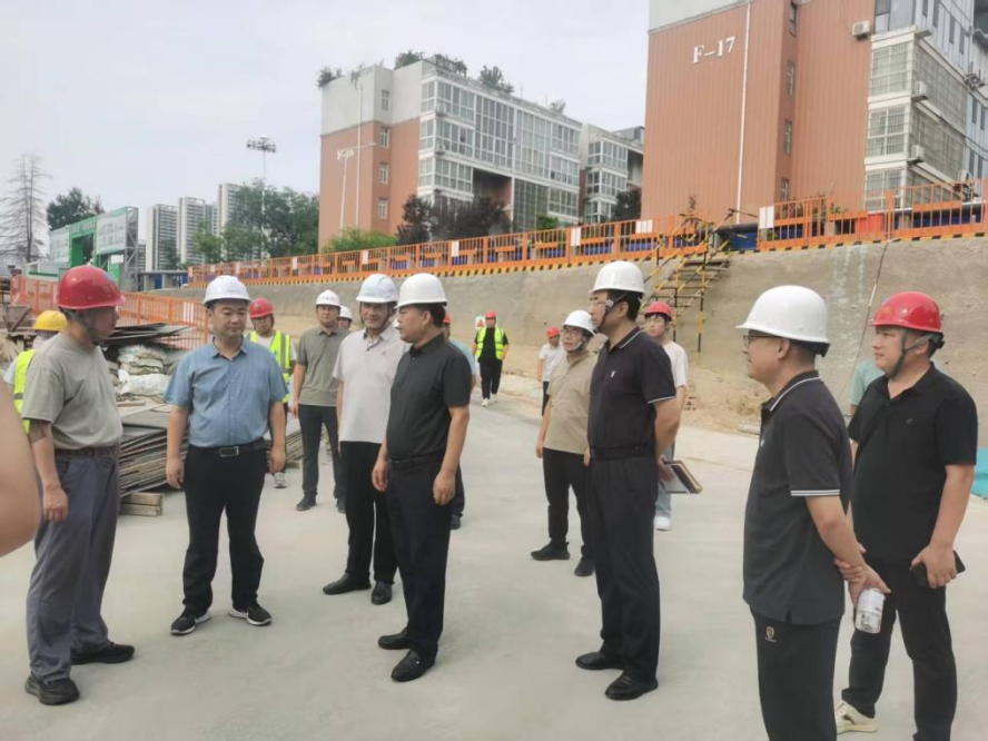 8月4日下午,新乡市住建局局长杨庆峰一行到新葡的京官网人才公寓项目施工现场检查安全文明施工及防汛应急准备工作,副校长赵伟杰、基建处长黄家骏及项目施工、监理单位负责人陪同检查。