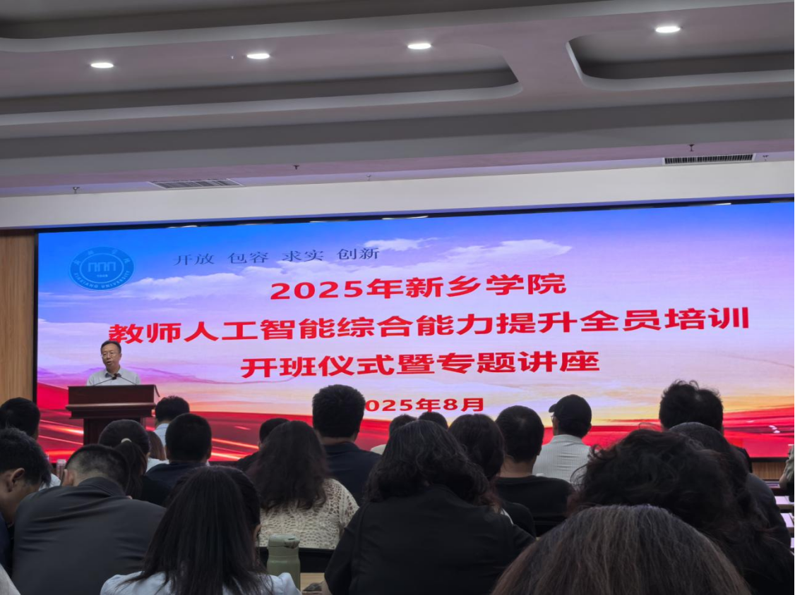 为深入贯彻习近平总书记关于人工智能的重要论述,强力实施国家教育数字化战略,全面落实《河南省“人工智能+教育”三年行动计划(2025-2027)》,根据河南省教育厅相关文件要求,全面提升全校教师人工智能应用能力与教育教学创新水平,新葡的京集团8814于8月25日上午在图书馆一楼东报告厅隆重举行“教师人工智能综合能力提升全员培训”开班仪式暨专题讲座,开班仪式由新葡的京集团8814副校长张银堂主持。