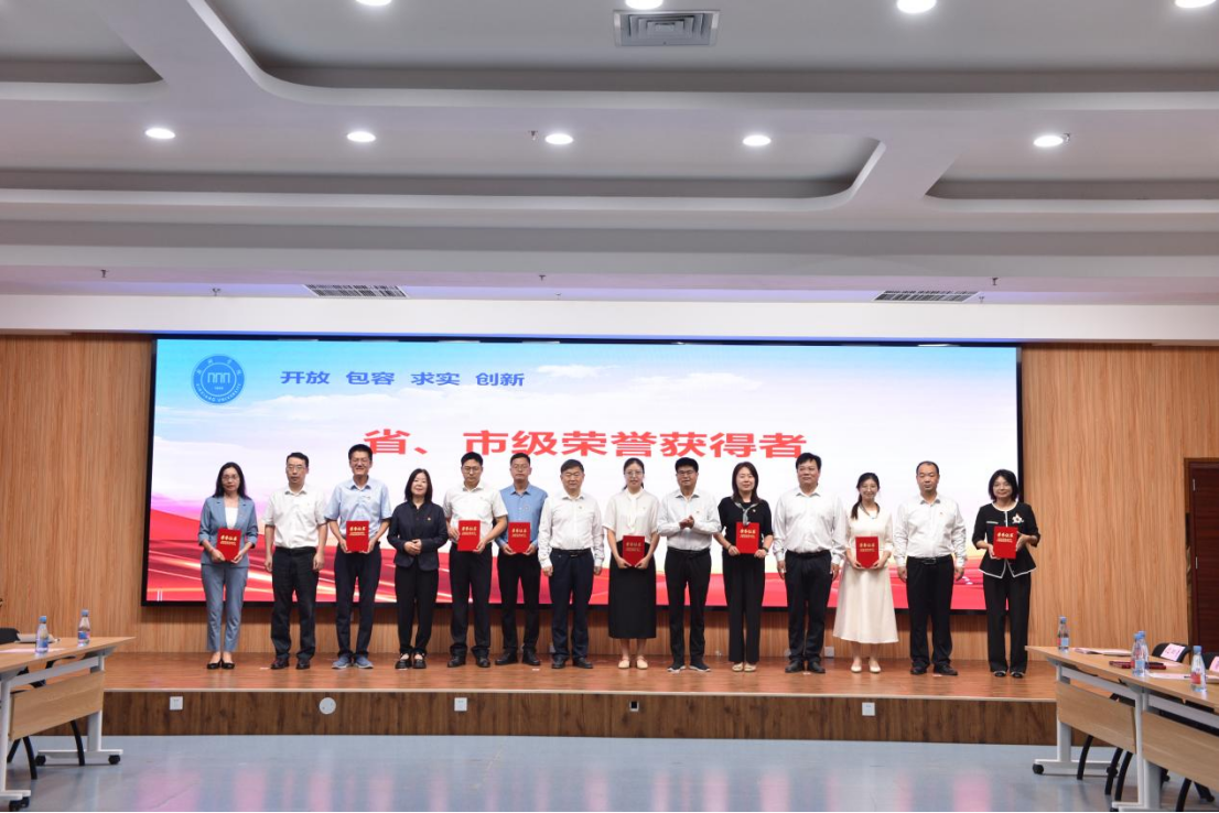 与会领导宣读了上级及学校表彰文件,并为河南省教育系统先进集体和先进个人、河南省教育系统2025年度教学技能竞赛获奖教师、河南省青年骨干教师、新乡市优秀教师、新葡的京集团8814“优秀共产党员”“优秀党务工作者”“师德标兵”“师德先进个人”以及“从教30年”教师代表、2025年度河南省科技特派员服务团、学校科研工作优秀组织单位、基础教育先进集体、学校先进基层党组织颁奖。