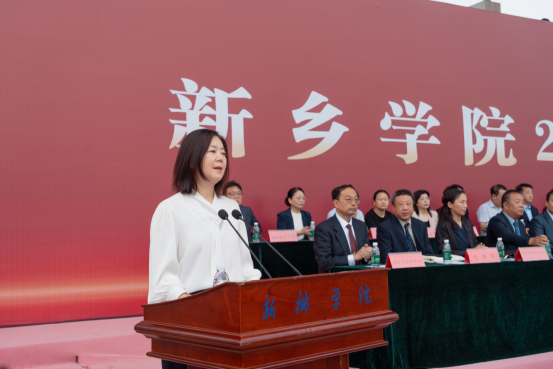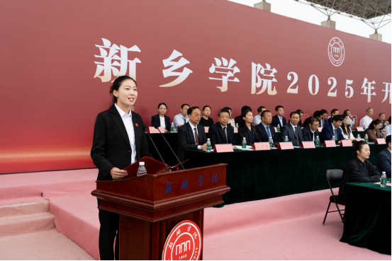 国家自然青年科学基金获得者、物理与电子工程学院程娜博士作为教师代表发言。她深情回顾了从新院学子到湖南大学硕博连读,再重返母校任教的成长历程,并以“心怀梦想、脚踏实地、拥抱多元”勉励同学们要珍惜时光、勤学笃行,执笔书写多彩的青春华章。