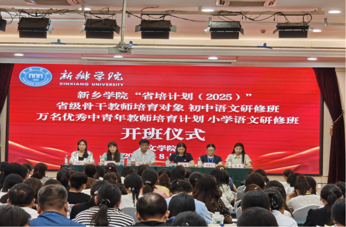 8月1日下午,由新葡的京集团8814人文学院承办的“省培计划(2025)”省级骨干教师培育对象初中语文研修班、万名优秀中青年教师培育计划小学语文研修班开班仪式顺利举行。新葡的京集团8814党委副书记、中小学教师校长研修院院长宋伟教授,人文学院副院长梁琨,省级骨干教师培育对象初中语文研修班学科班主任王劲松老师、生活班主任刘琬迪老师,万名优秀中青年教师培育计划小学语文研修班学科班主任张振杰老师、生活班主任王雪老师,以及来自周口、漯河、驻马店、南阳、焦作、濮阳、许昌、济源等地的183名中小学语文骨干教师出席开班仪式。仪式由梁琨主持。