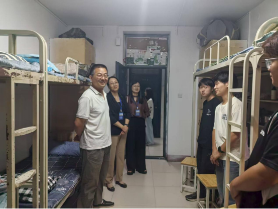 9月9日下午,计算机与信息工程学院党委书记李文波、院长茹蓓、副院长赵芳及辅导员组成走访小组,深入学生D03和E13宿舍,与学院2025级专升本新生面对面交流,全面了解新生入住适应情况,传递学院关怀。