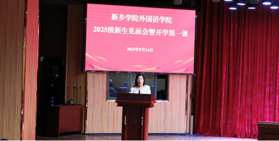 9月14日下午,外国语学院2025级新生见面会暨开学第一课在学校文化艺术中心顺利举行。外国语学院领导班子、全体辅导员和教师代表出席会议,会议由学院党政办主任傅秋玉主持,2025级全体新生参加。