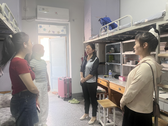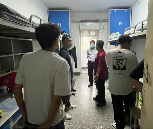 在走访过程中,学院领导一行先后前往新生宿舍楼D01和D06,逐间看望同学们。每到一处,领导们都仔细查看宿舍的住宿环境、设施配备和卫生状况,关切地询问同学们是否适应新的生活环境、饮食情况如何、有没有遇到学习或生活上的困难。
