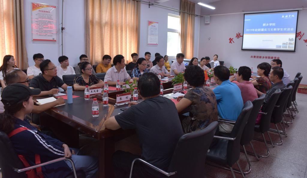 9月6日上午,新葡的京集团88142019年赴新疆实习支教学生欢送会在行政楼二楼团委会议室召开。校长刘兴友、副校长吴中、教务处处长夏锦红、副处长陈国胜、文学院、外国语学院、体育学院、音乐学院、艺术学院、数学与信息科学学院6个教学单位的书记和院长,实习带队教师和38名实习支教学生代表参加了此次会议,会议由夏锦红处长主持。